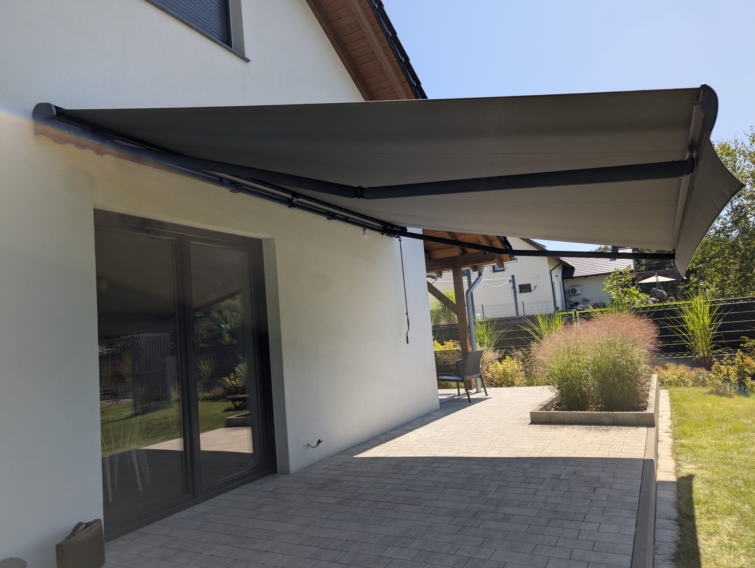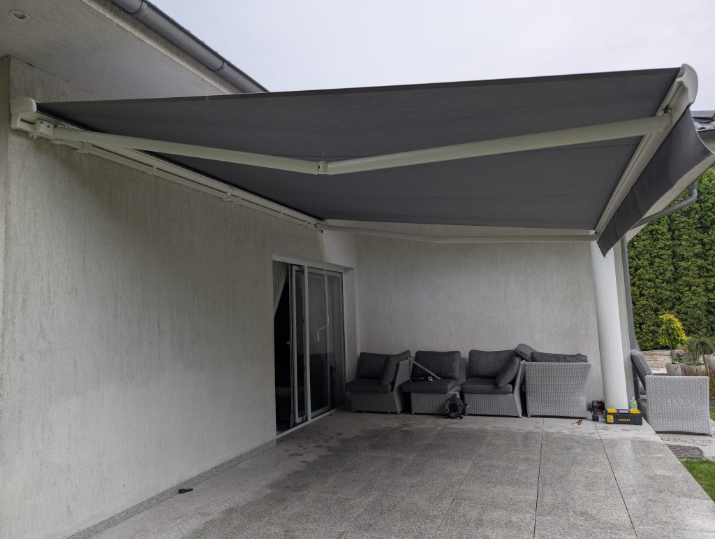 Oferujemy markizy dopasowane do każdej architektury – od klasycznych markiz tarasowych, przez ramienne, aż po systemy z napędem elektrycznym i czujnikami wiatru.